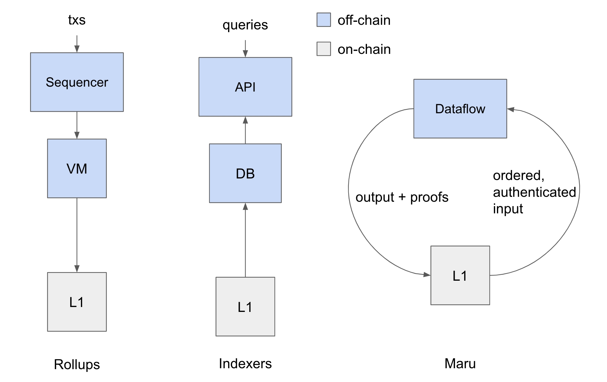 It's become quite clear that L1s are best used for data availability and verification and that everything else should happen off-chain β it's where we settle data. Rollups and Oracles package off-chain data and post it on-chain. Indexers package on-chain data and post it off-chain. Maru completes the circle β it packages on-chain data, processes it off-chain, packages that off-chain data, and posts it back on-chain.